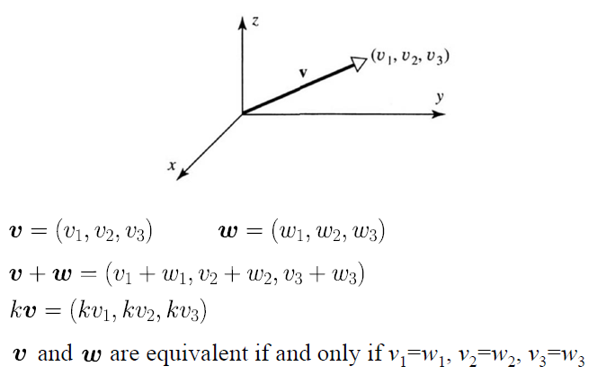 - 若 u, v 和 w 是三維空間中的向量, 則
