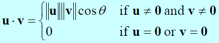 若 θ 表示 u 和 v 之間的角度, u‧v = ||u|| ||v|| cosθ