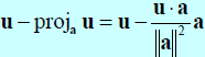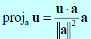 - 若有向量 u, a,且 a 不為 0, 則 u 可以u=w1+w2 來表示之, 其中 w1 是 a 的純量倍數, w2 垂直於 a