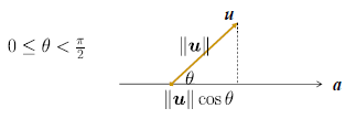 ||proj(a)u|| = |u‧a| / |a| = ||u|| |cosθ| -------> θ為 u 和 a 之間的夾角