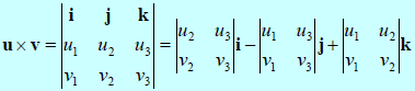 - 若 u = (u1,u2,u3) 和 v=(v1,v2,v3) 式三維空間的向量, 則外積 u×v 是個向量, u×v = (u2v3 – u3v2, u3v1 – u1v3, u1v2 – u2v1)