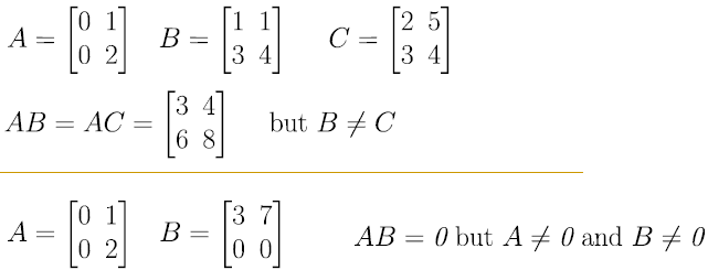 - 對實數a和b, 我們知道 ab = ba,而這被稱作乘法的交換律(commutative law for multiplication). 但對矩陣而言 AB 和 BA 並不相等