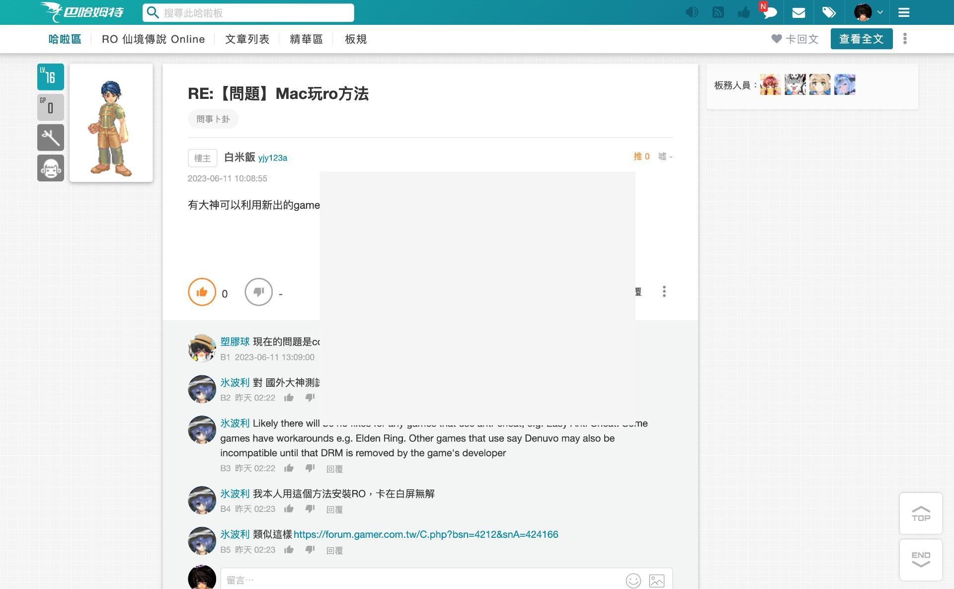 看討論好像是因為現在 RO 有 anti-cheat 的 cd (Cheat Defender) 程式,而目前有使用這個的遊戲都沒辦法用 game porting toolkit 跑,所以⋯⋯ 很遺憾地 Mission Failed。